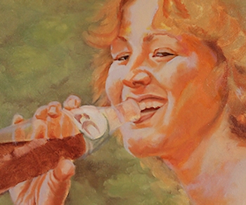 I wanted this painting in the Sherburne County Government Center show last spring and had just about finished it, but wanted to put a "retouch varnish" on it to protect it while it showed, with the intention of finishing it later. But, as I applied the varnish, I discovered the hard way that my paint had not dried enough. The varnish brush smeared the painting's brushstrokes all over the place, leaving the image a blended mess, very unpainterly. I was horrified that I had nearly ruined a painting I had worked hours on, but was determined to put it in the show so framed it, as is, anyway. After the 6-week show, I was fortunately able to re-gear my brain back to the color scheme and visual idea I had had originally and managed to get it back in shape. I mention that here so you might not make that particular mistake. If so much time (and life) goes by after you've begun a painting, it's very difficult to take up where you left off. I advise my students to write down major visual decisions for each painting for that very reason. SEPT 1, 2012: Here's sort of an oddball painting I threw together. It's based on a photo a good friend of mine loaned me a couple of years ago. She thought I'd like to paint it. ![]() Not really my cup of tea (the "cute" thing). I especially dislike painting figures who are looking straight at you (unless there's a conceptual reason for it), especially a very young person like this. A child would rarely pose for you like that, so the painting becomes an obvious knockoff of a photograph. There was a bunch of small-leaved plants in the left foreground that I replaced with a hosta-like leaf just to break up the overall texture of the piece. Painting teeth is weird, but painting kid teeth is weirder, especially if they're in shadow. In a sense, this was quite a challenge for a throw-away painting. It will soon be a gift to the friend who loaned the pic to me. At least I know she likes the image. |
